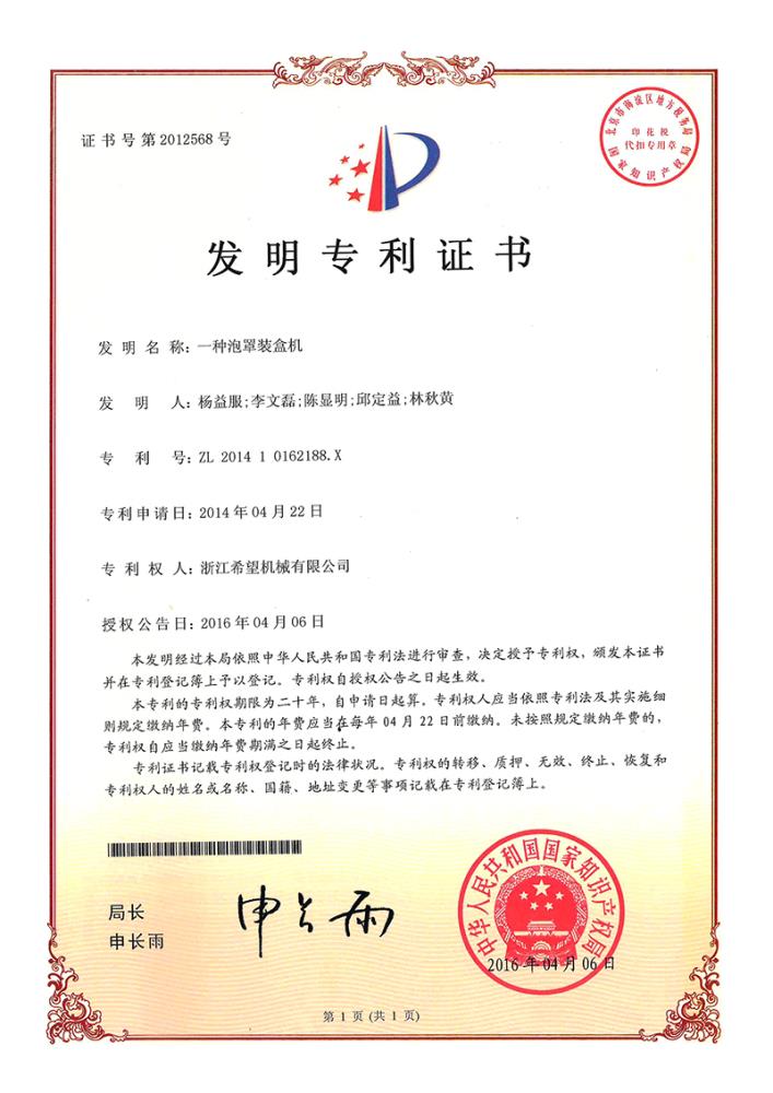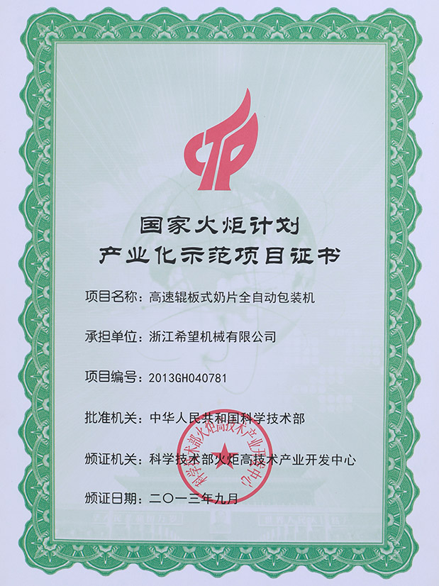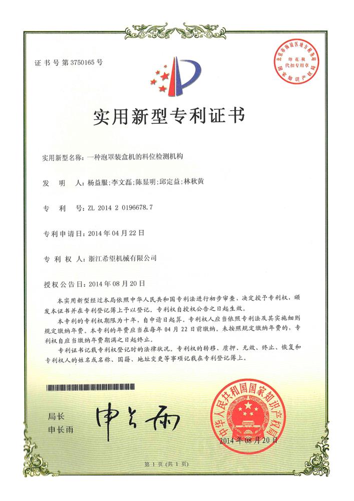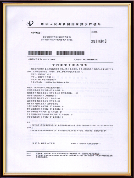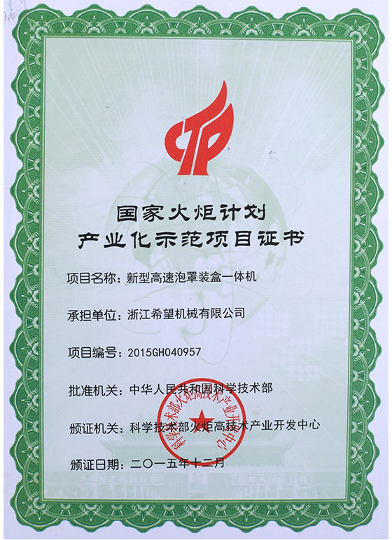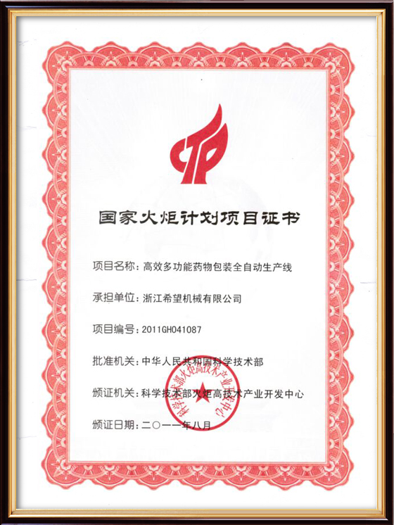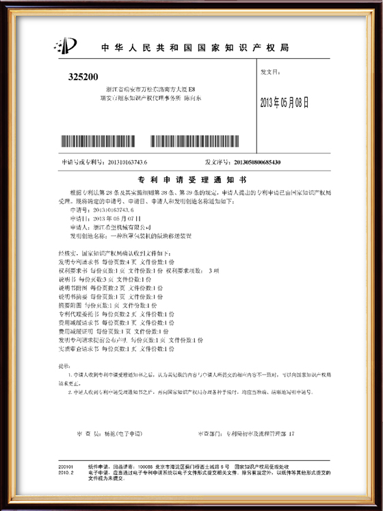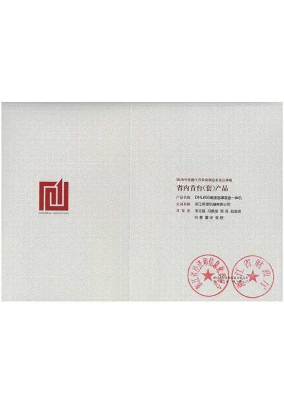 2016年“DHL600高速泡罩裝盒一體機(jī)”獲浙江省首臺套產(chǎn)品榮譽(yù)稱號。