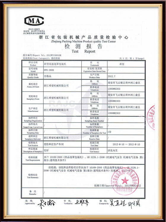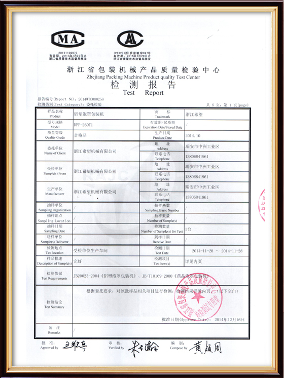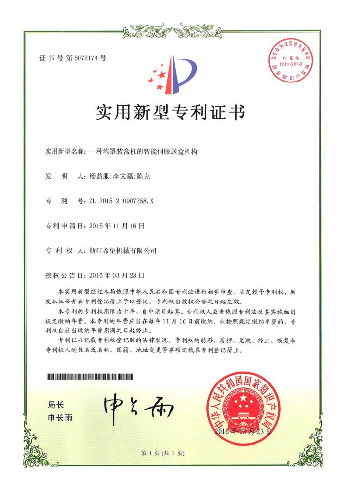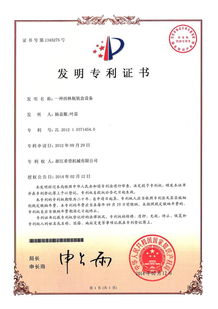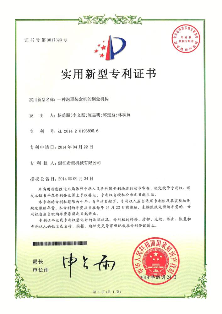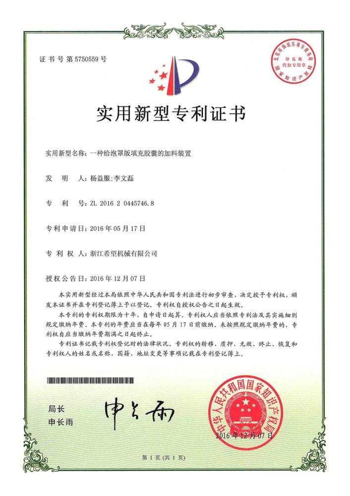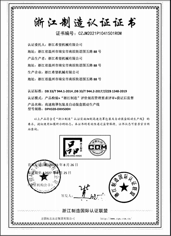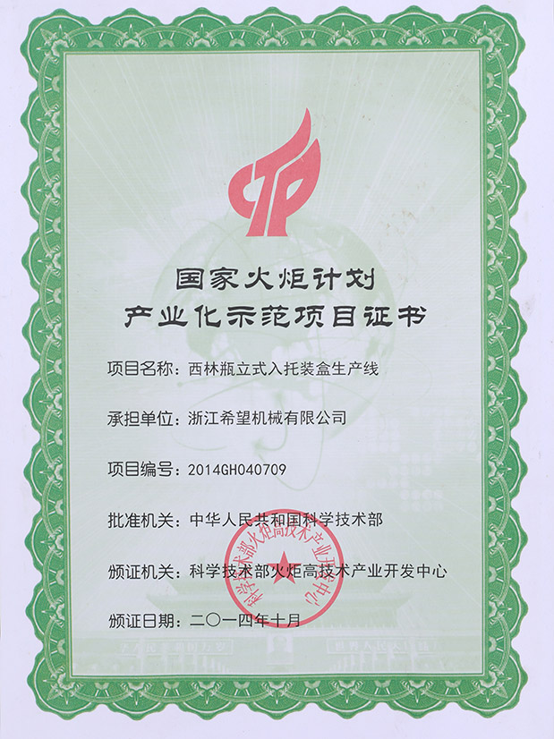 2016年“DHL600高速泡罩裝盒一體機(jī)”獲浙江省首臺套產(chǎn)品榮譽(yù)稱號。