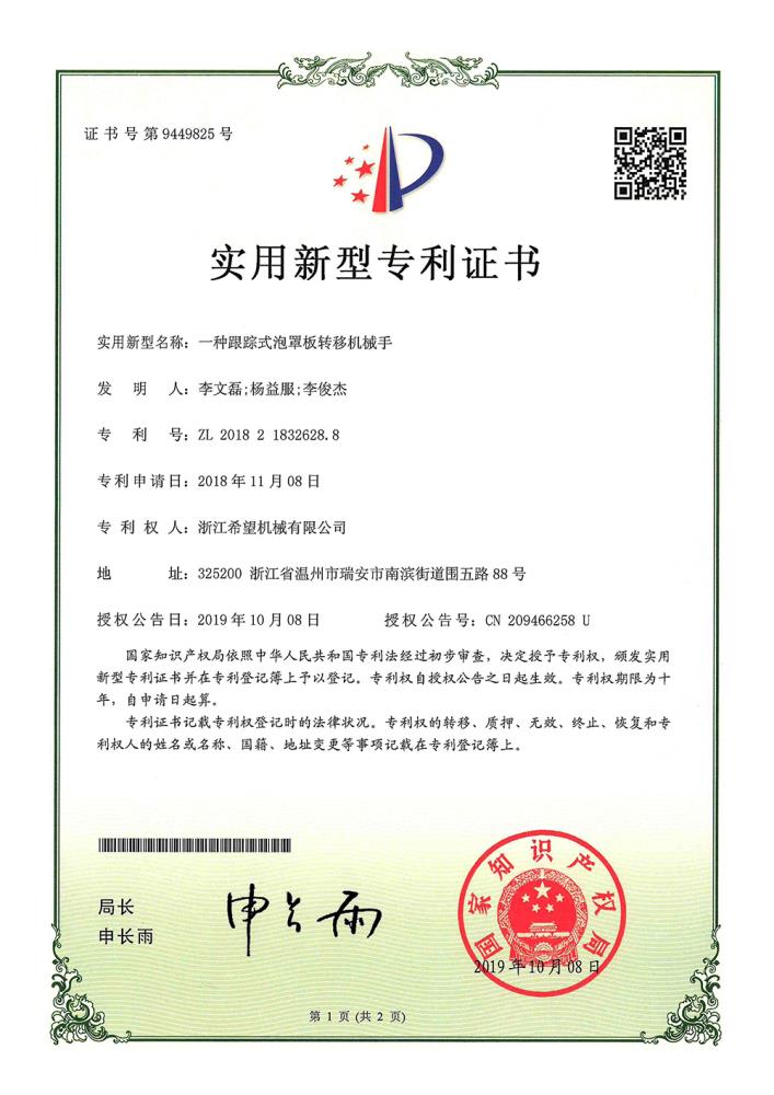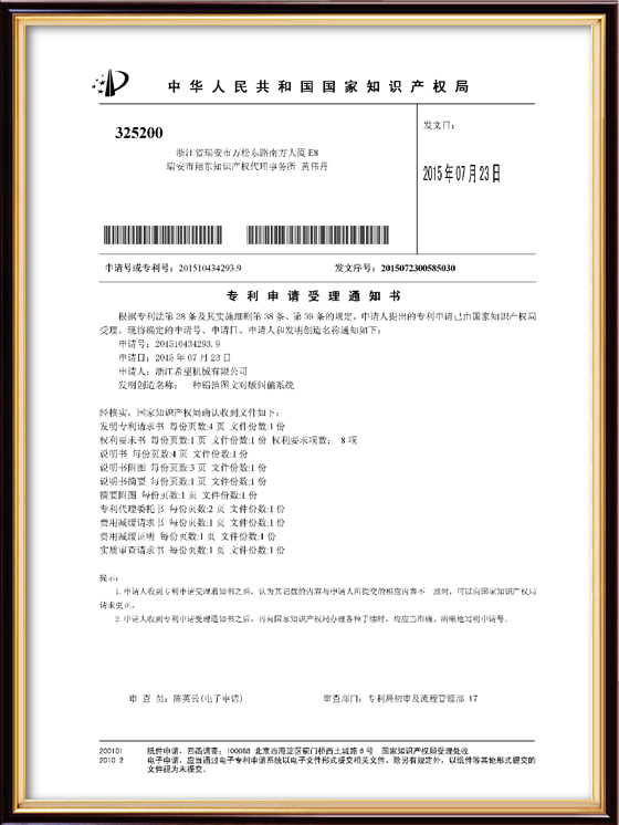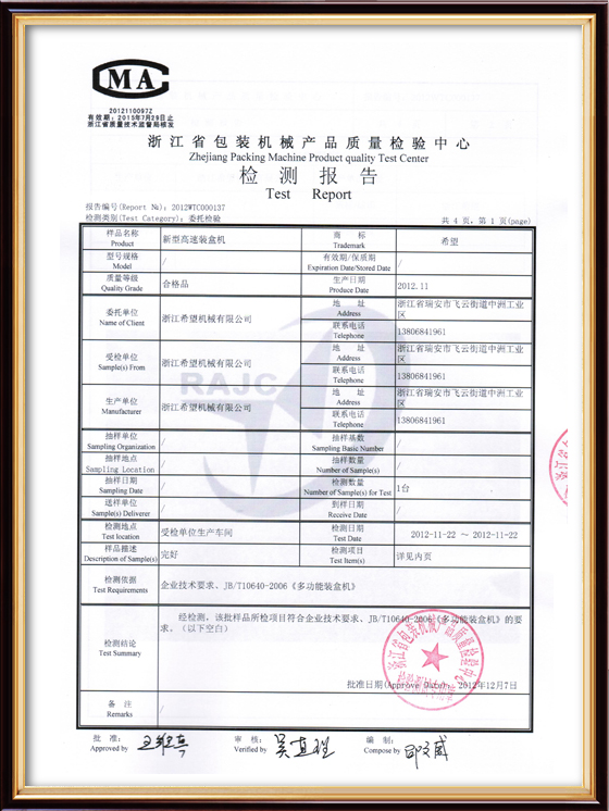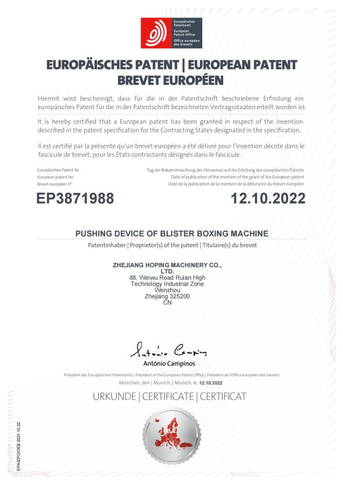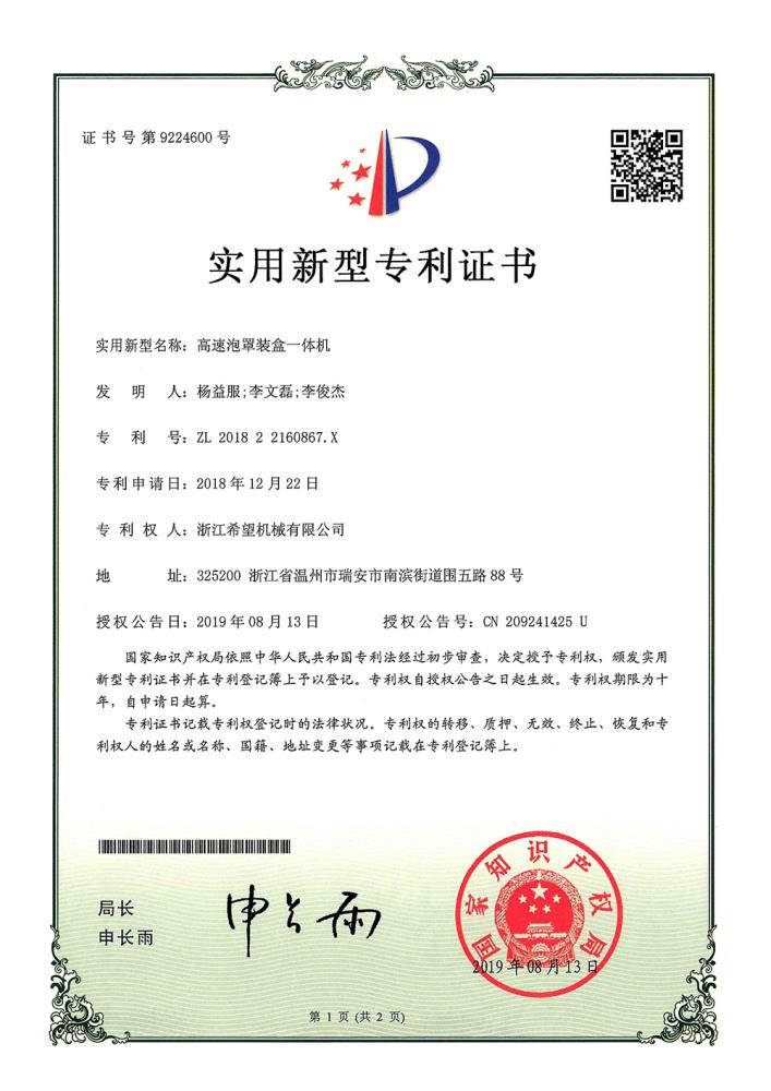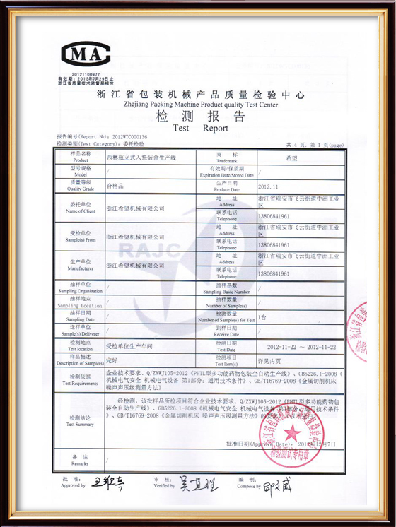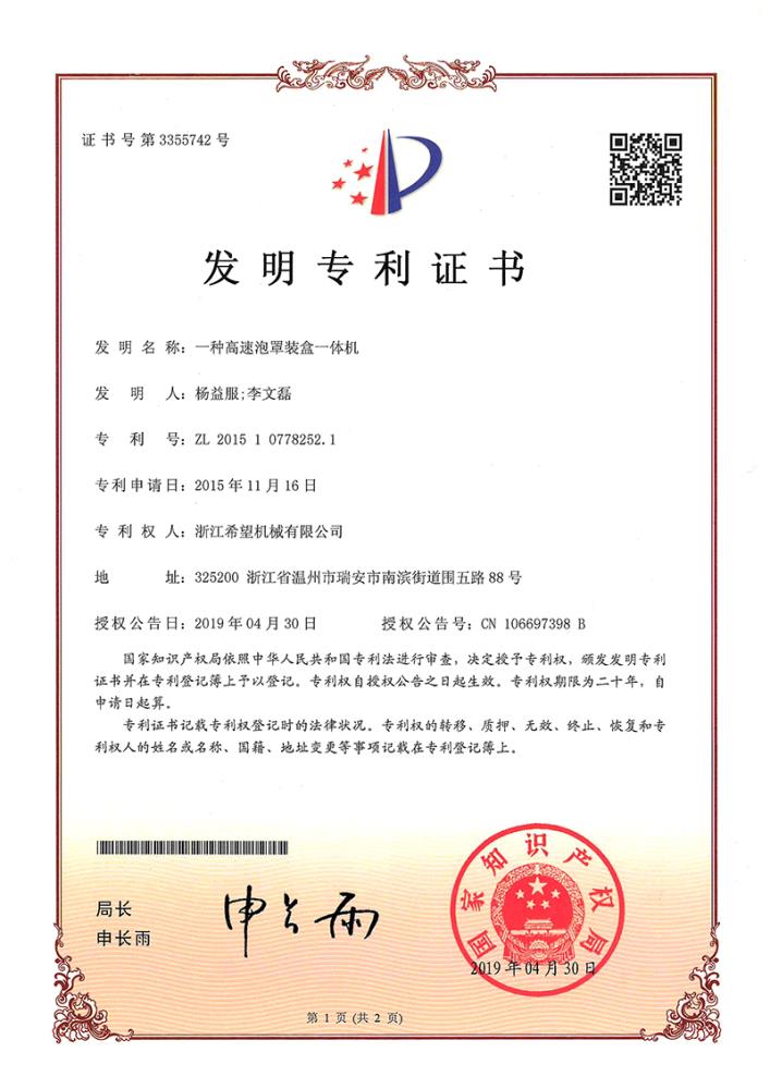 2016年“DHL600高速泡罩裝盒一體機(jī)”獲浙江省首臺套產(chǎn)品榮譽(yù)稱號。