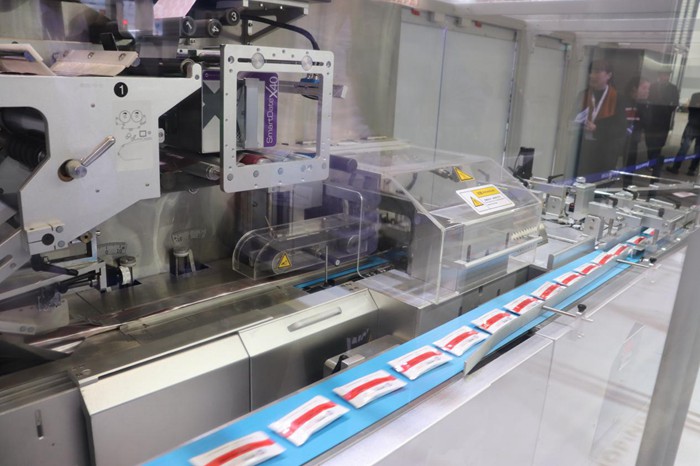 據(jù)悉,浙江希望目前主要生產(chǎn)3大系列產(chǎn)品,包括泡罩機(jī)、枕包機(jī)、裝盒機(jī)以及一體機(jī)聯(lián)動(dòng)生產(chǎn)線設(shè)備。本次展會(huì)現(xiàn)場(chǎng),主要帶來了3條聯(lián)動(dòng)生產(chǎn)線。“DXWHL 600全伺服高速泡罩枕包裝盒一體機(jī),是本次展會(huì)要重點(diǎn)展示的一款產(chǎn)品,其融入了技術(shù)理念,雙通道聯(lián)動(dòng)生產(chǎn)模式,使泡罩機(jī)600板/MIN、往復(fù)式枕包機(jī)400盒/MIN產(chǎn)能最大化匹配,合流后能達(dá)到300包/MIN的生產(chǎn)產(chǎn)量,大大提升了終端用戶生產(chǎn)效益。“李總表示,這款他重點(diǎn)介紹的DXWHL 600全伺服高速泡罩枕包裝盒一體機(jī),是浙江希望打造全球化市場(chǎng)推出的重要設(shè)備之一,在合流、智能多段帶以及12等分旋轉(zhuǎn)機(jī)械手上具備著非常大的優(yōu)勢(shì)。