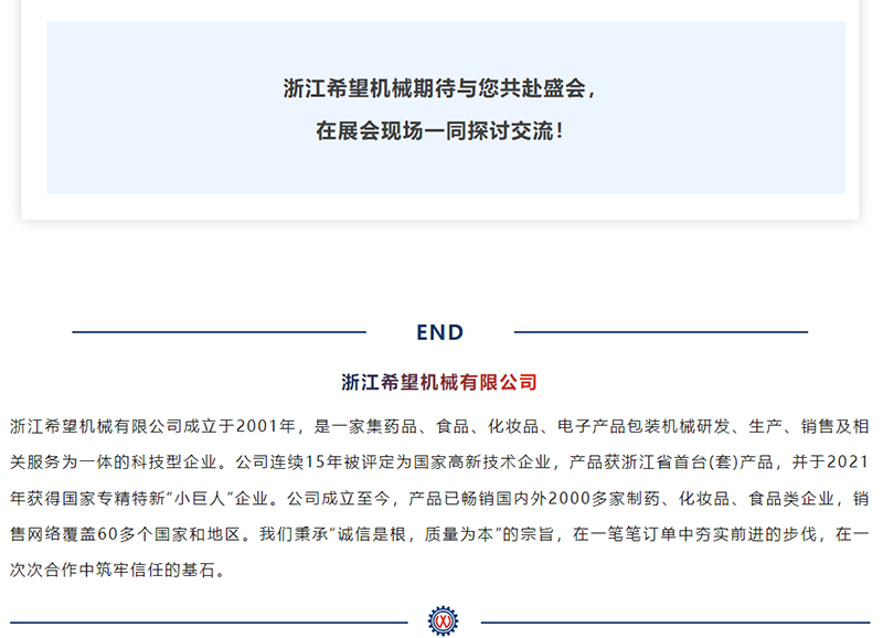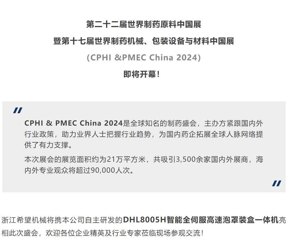 即將開幕!浙江希望機械邀您共赴CPHI &PMEC China 2024!